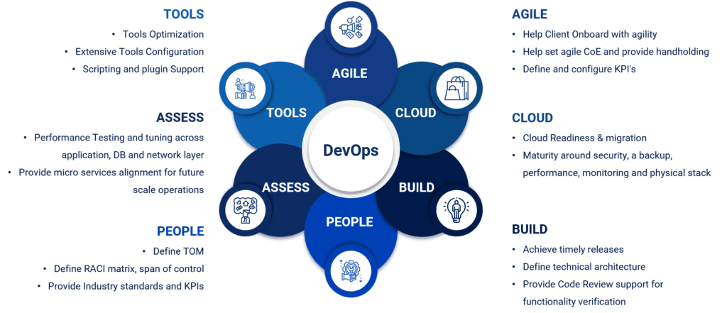 DevOps Consulting Services:-Our DevOps team of SMEs addresses many such concerns! DevOps as a Service recommends a new cultural shift that ideally bridges gaps between the core operating teams i.e., Development (Dev) and Operations (Ops), for increased collaboration and enhanced productivity resulting in quality deliverables and improved time to market.